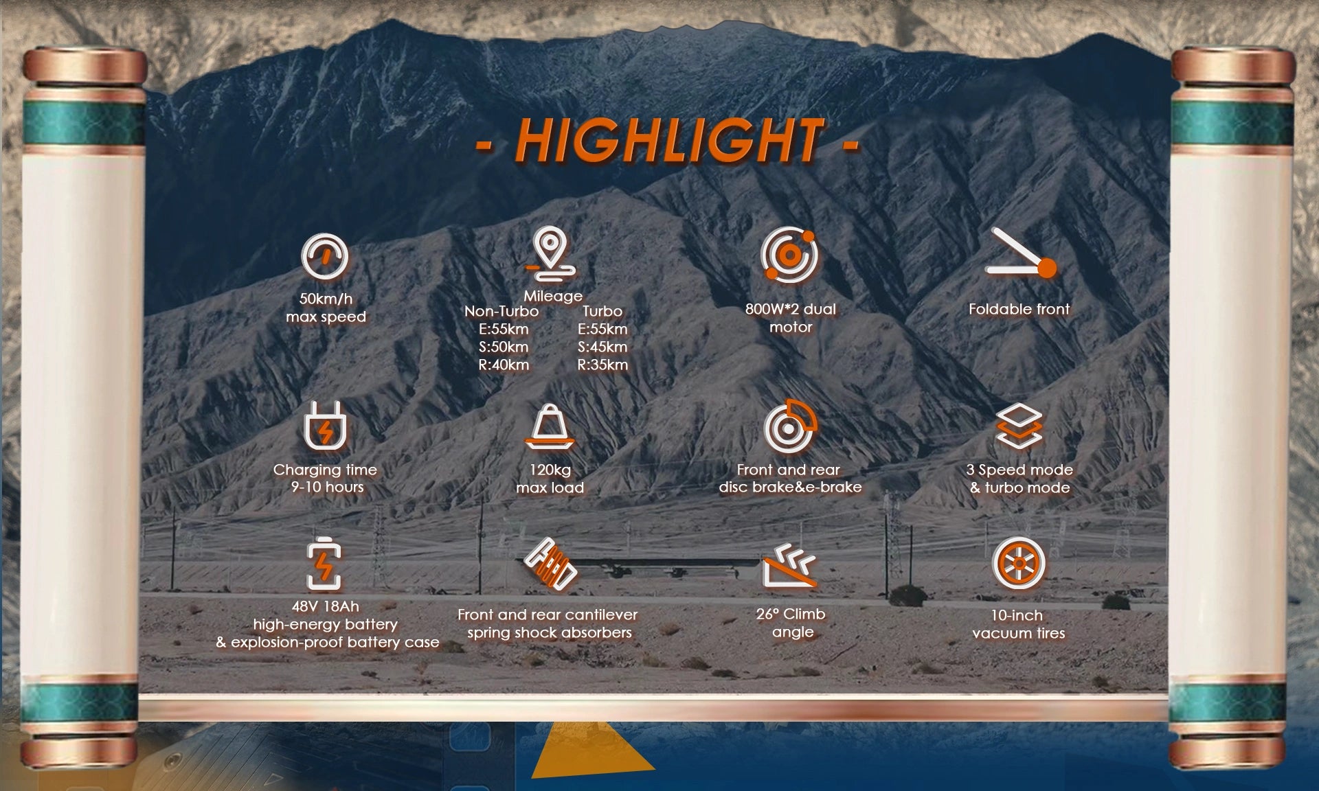 R: 40 km (Non-Turbo) / 35 km (Turbo)